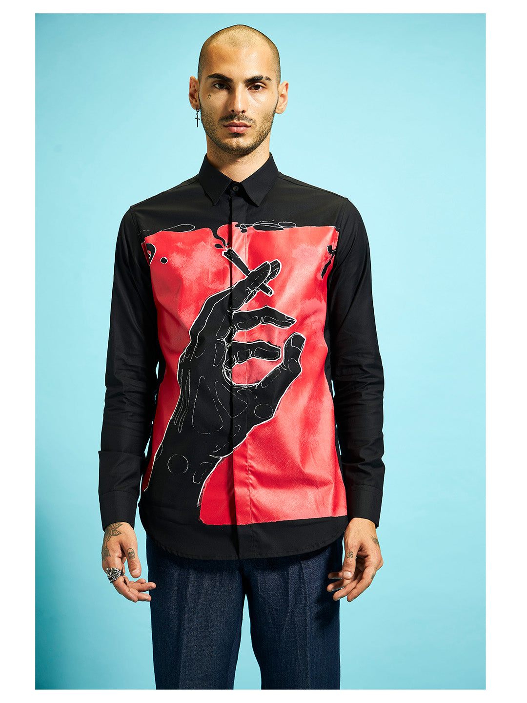 Screen printed artwork on a black shirt