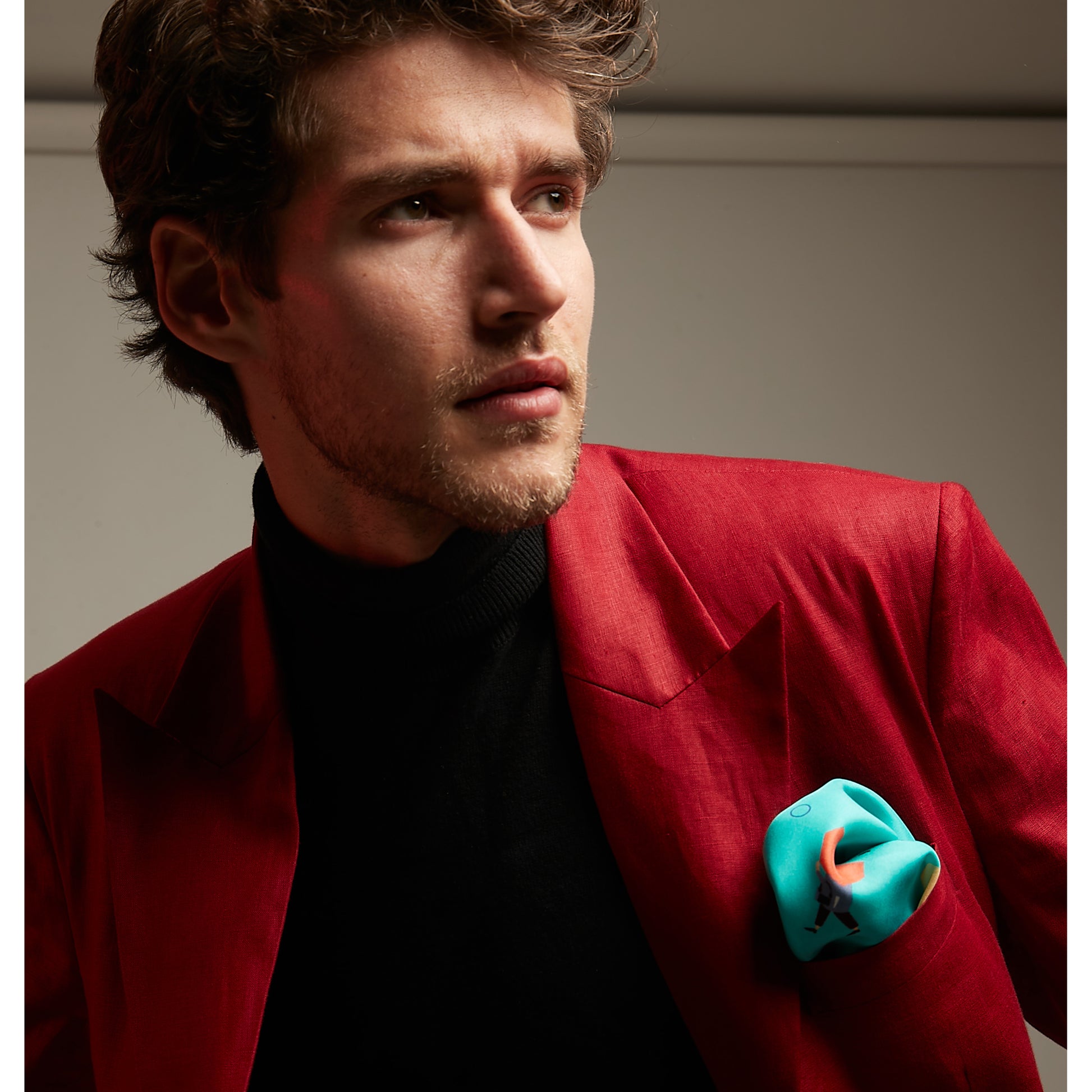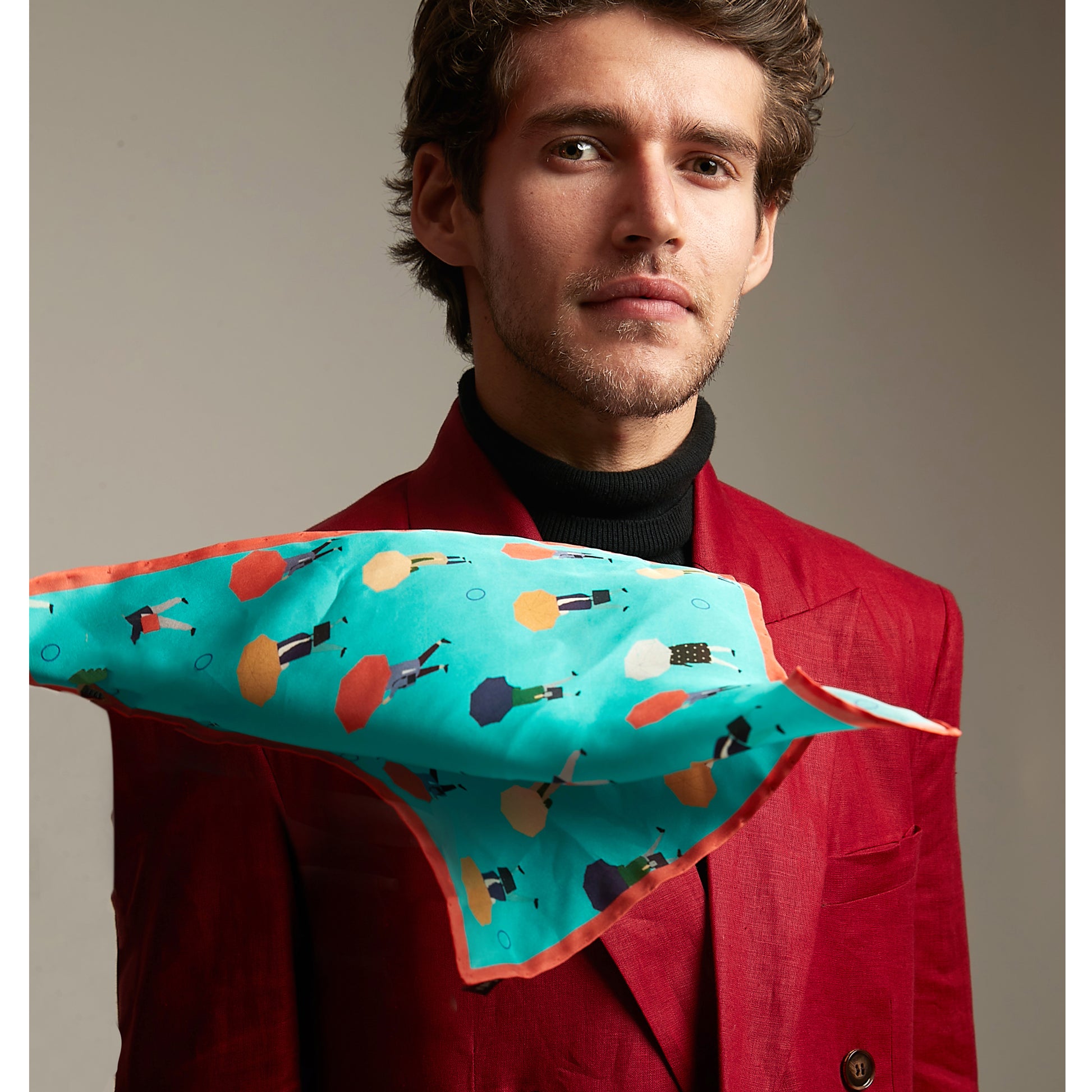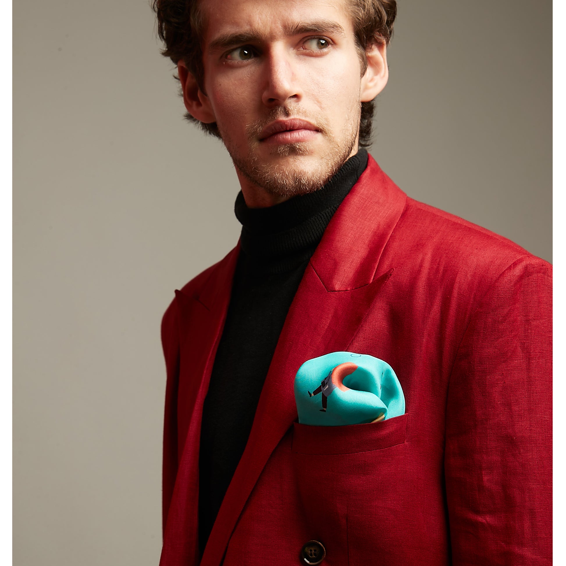 Pocket Square with a digitally printed illustration.
